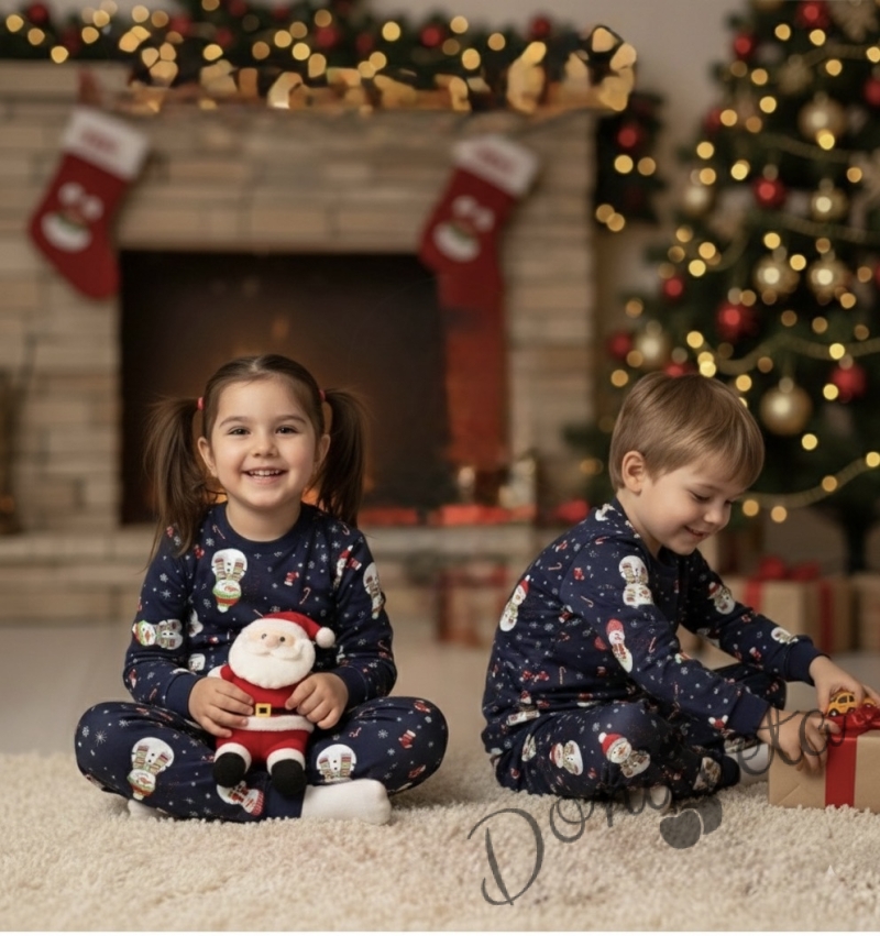 Коледна детска пижама в тъмносиньо с картинка с коледни мотиви