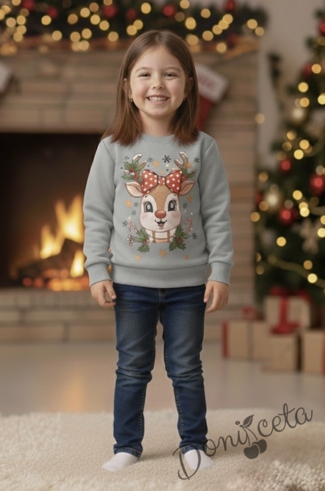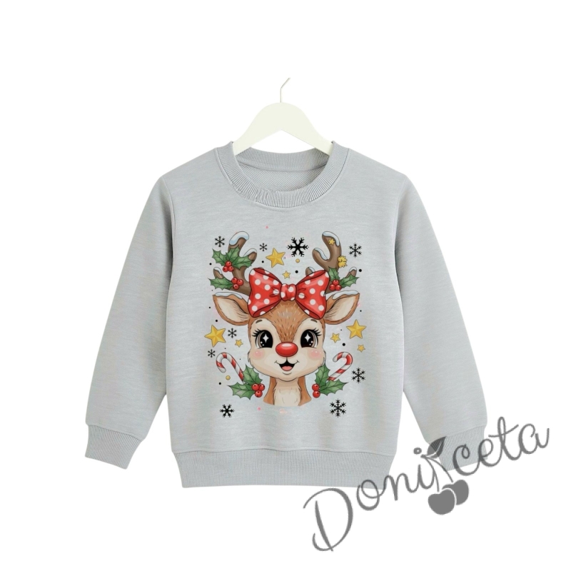 Начало МОМИЧЕТА Коледна ватирана блуза Звън с еленче с шал в сиво