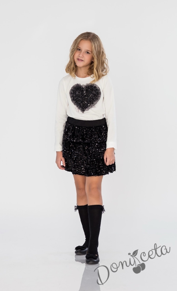 Детска пола в черно с тюл с пайети Contrast от колекция Черновина