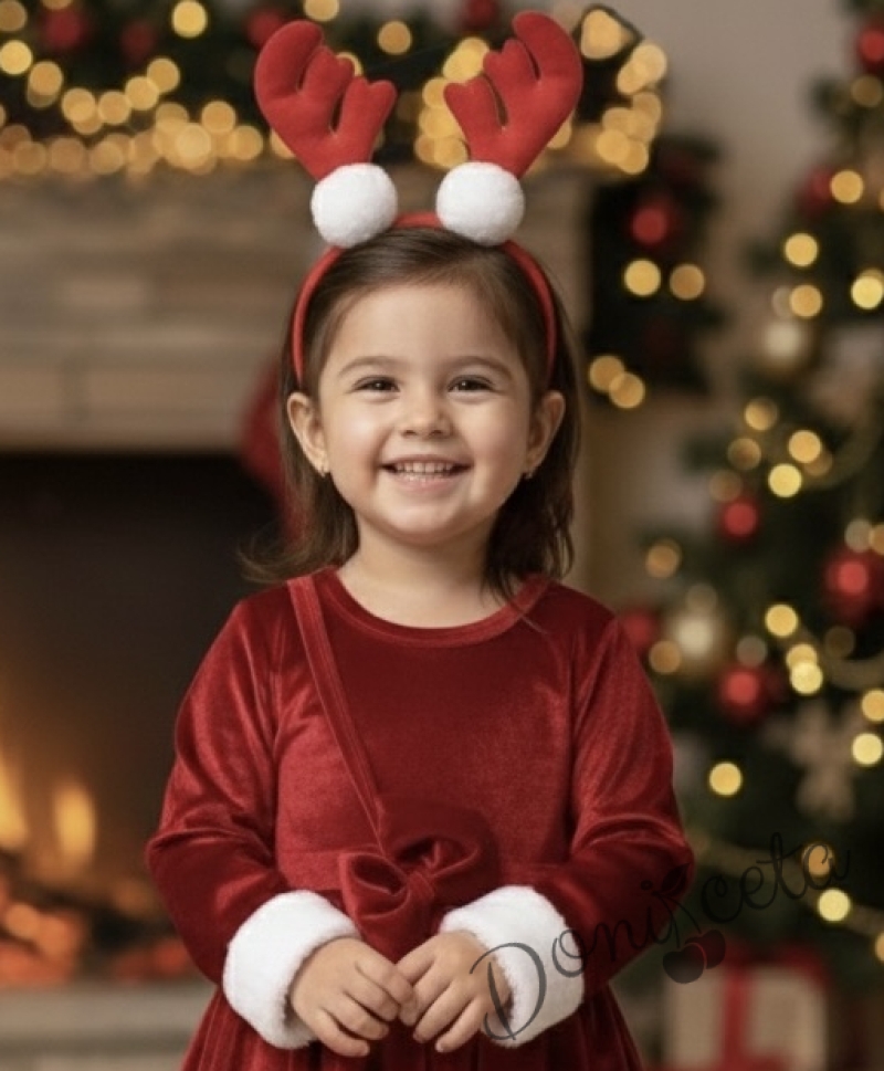 Начало МОМИЧЕТА Коледна бебешка/детска рокля в червено с панделка и плюш