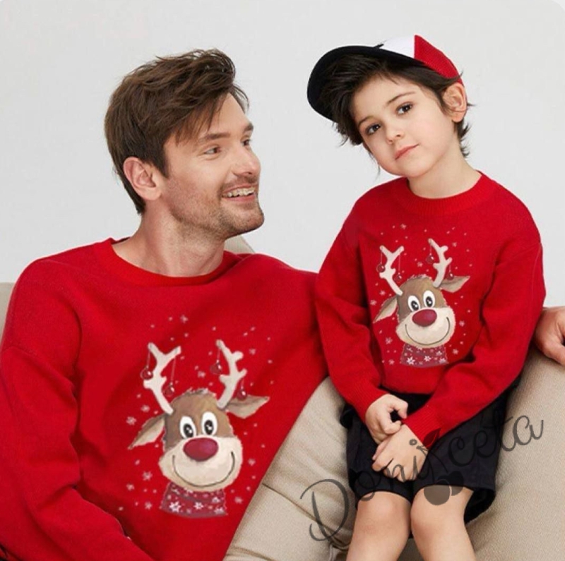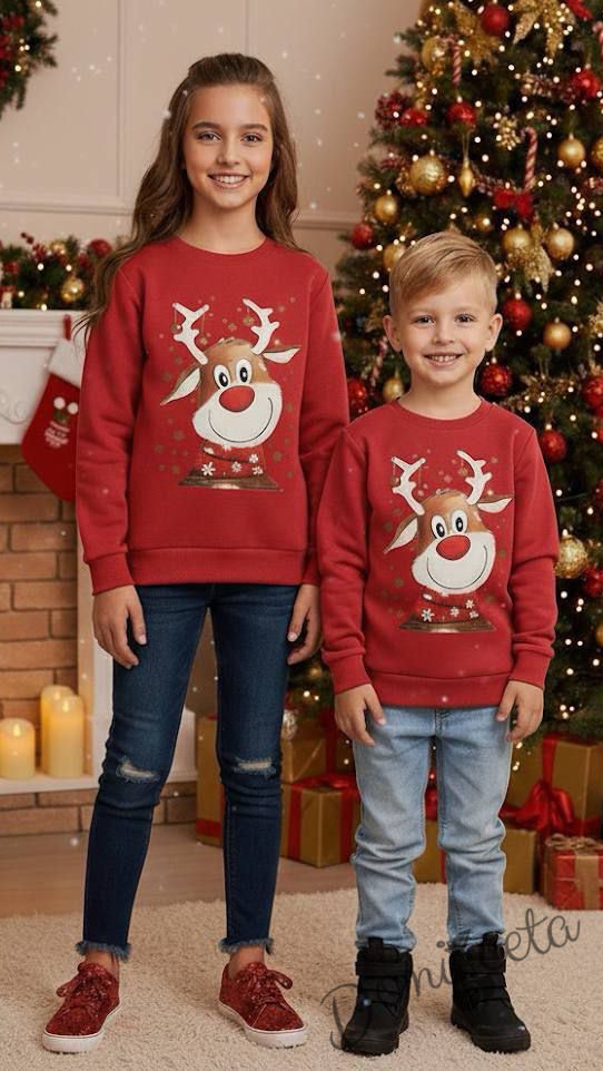 Детска коледна блуза в червено със сърнички 4354764