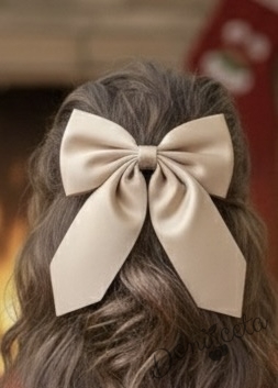Детска рокля плюш в бежово с панделка Елиса и фиба за коса от колекция Бежина
