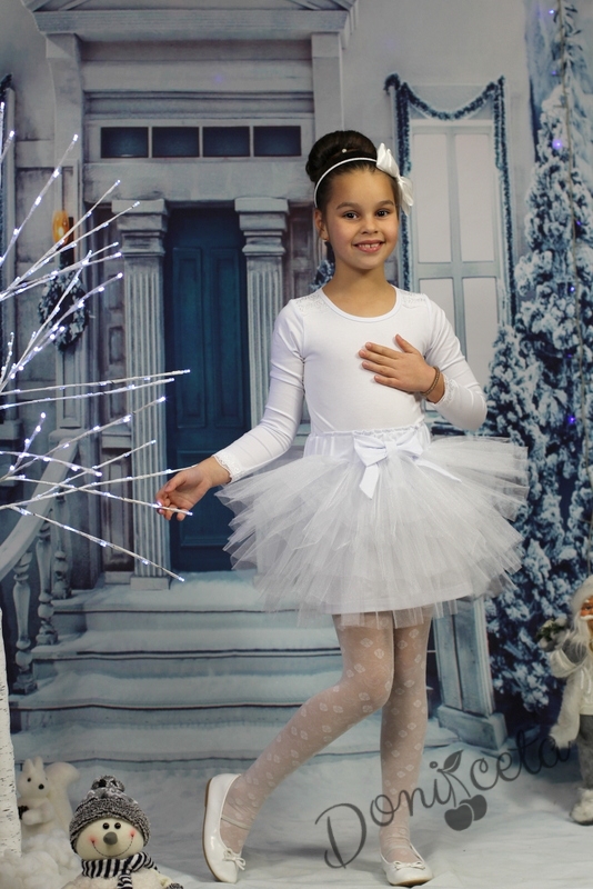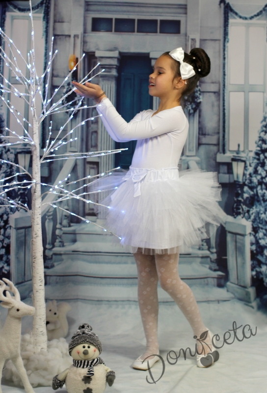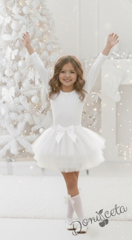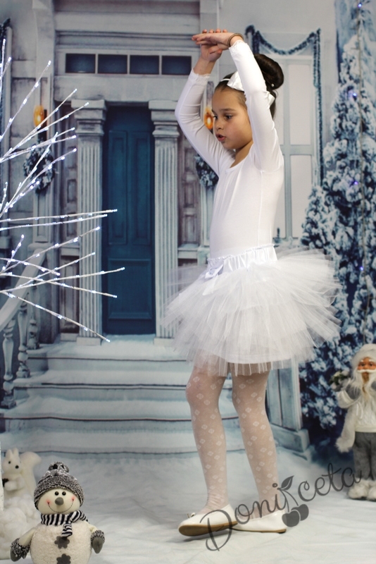 Детска туту пола пачка в бяло с богат тюл на пластове