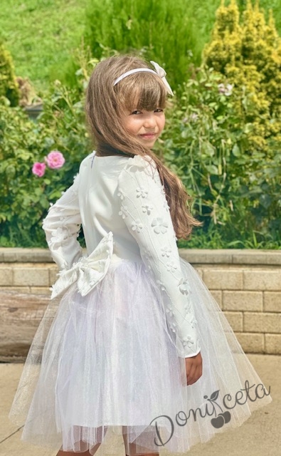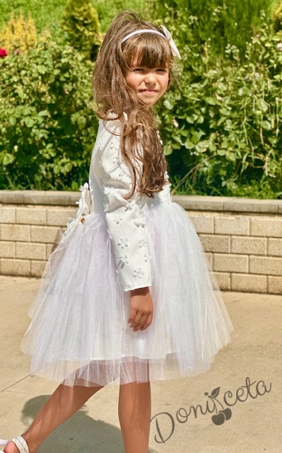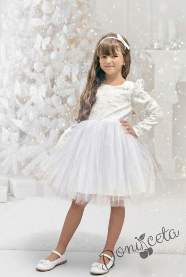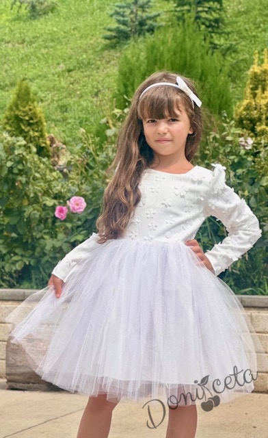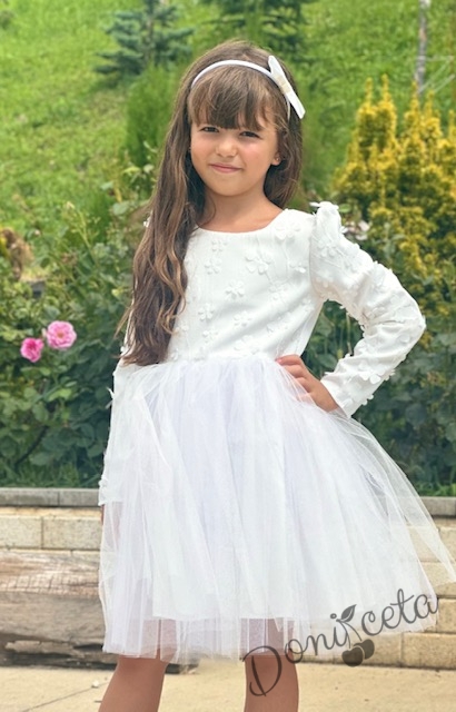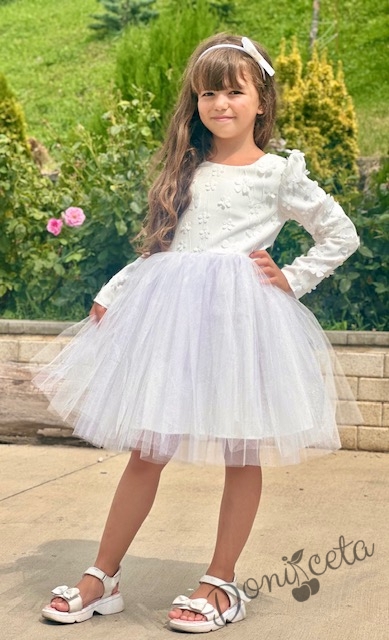- Красива детска рокля за малки принцеси в бяло с красив дълъг ръкав.