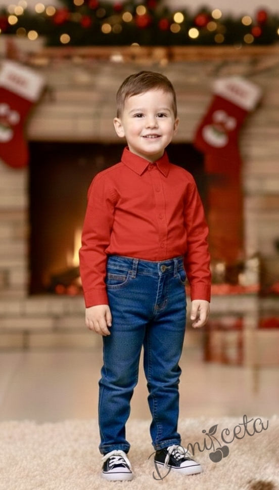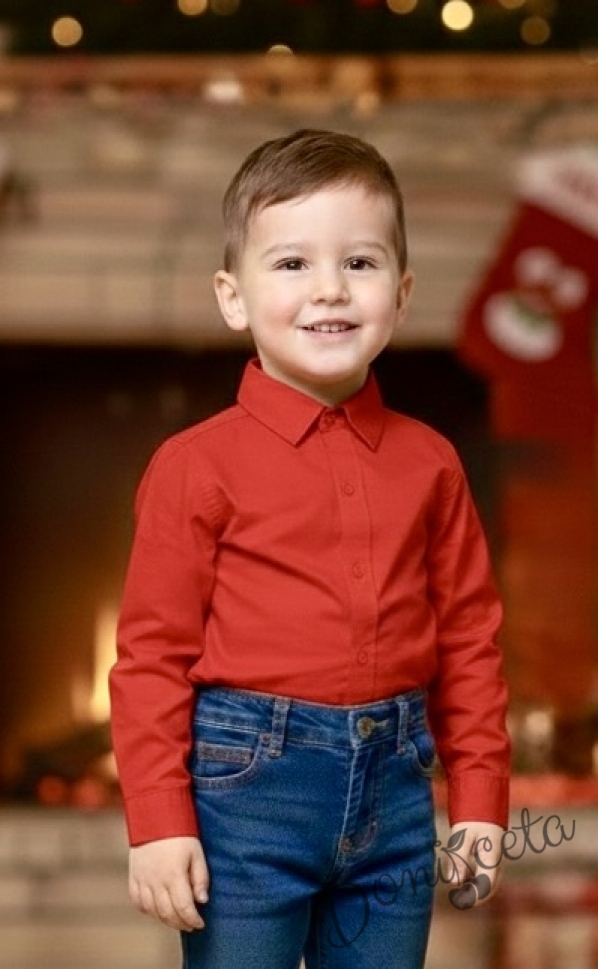 Детска изчистена риза в червено с дълъг ръкав за момче