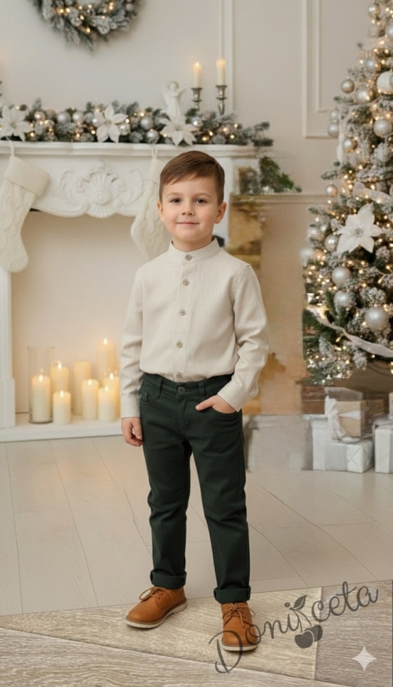 Детски спортно-елегантен панталон в зелено за момче