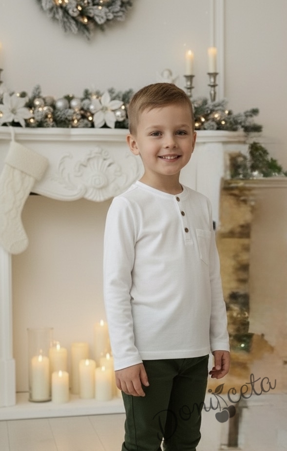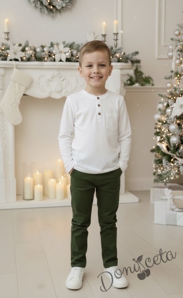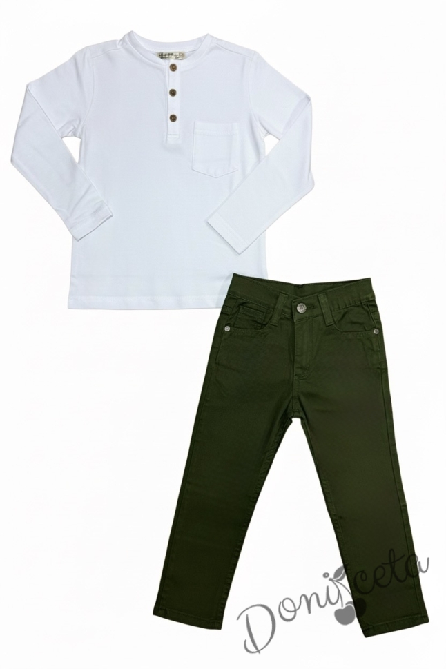 Комплект за момче от 2 части-блуза в бяло с копчета и панталон в зелено