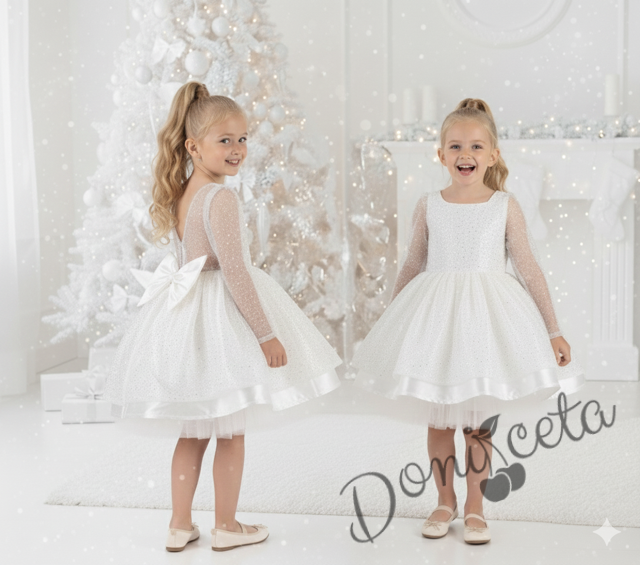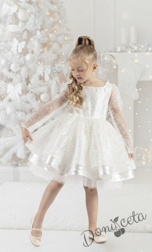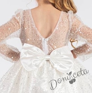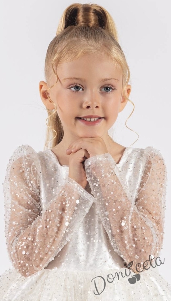 Официална детска рокля в бяло с пайети с дълъг ръкав Естел
