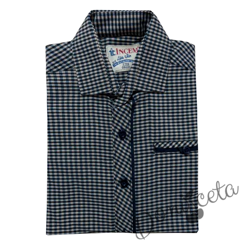 Официална детска риза с дълъг ръкав в бежово на квадратчета с имитация на джоб
