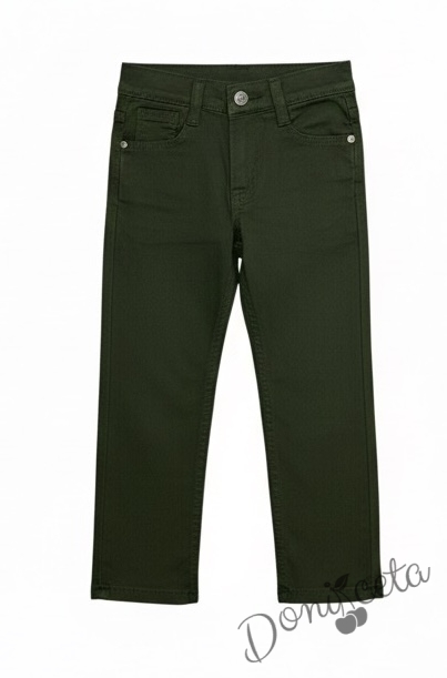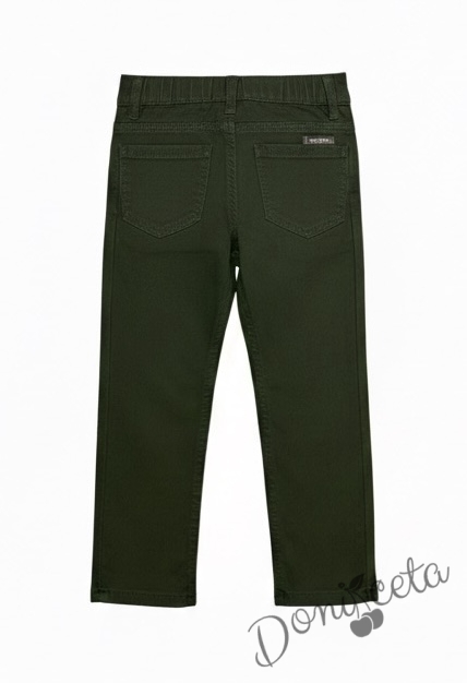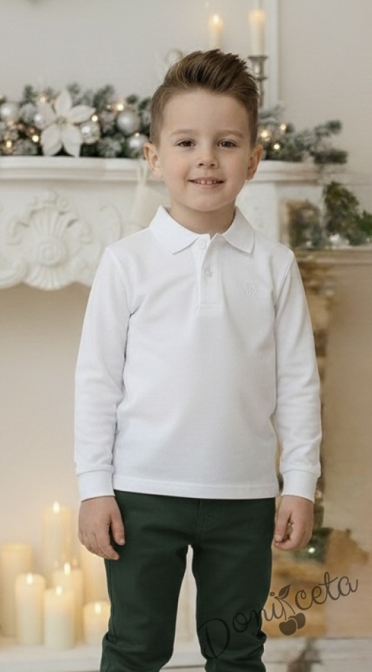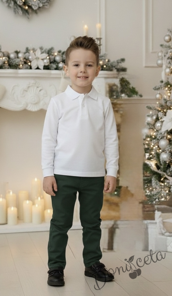 Представяме Ви нашия елегантен и стилен празничен ии ежедневен комплект за момче от 2 части-блуза с якичка в бяло и панталон в зелено.