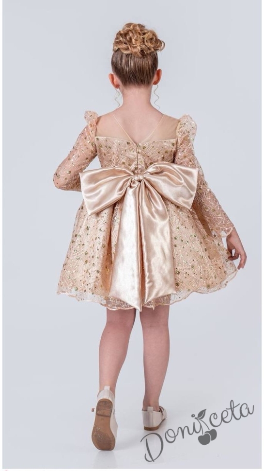 - Оригинална детска рокля с дълъг ръкав в златисто с блясък.