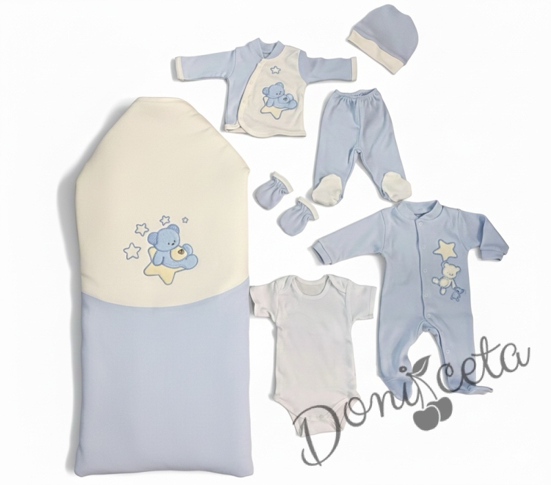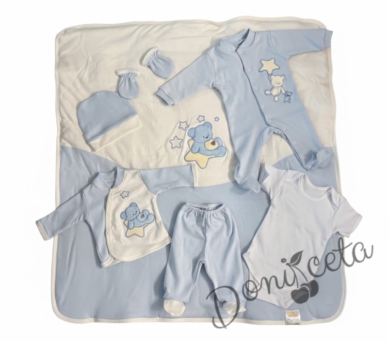 Бебешки комплект за изписване за момче светлосиньо от 7 части