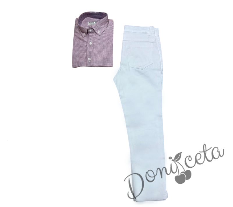 Официален комплект за момче от 2 части-риза и панталон в бяло