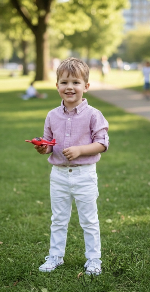 Представяме Ви нашия елегантен и стилен празничен комплект за момче от 2 части-риза и панталон в бяло.