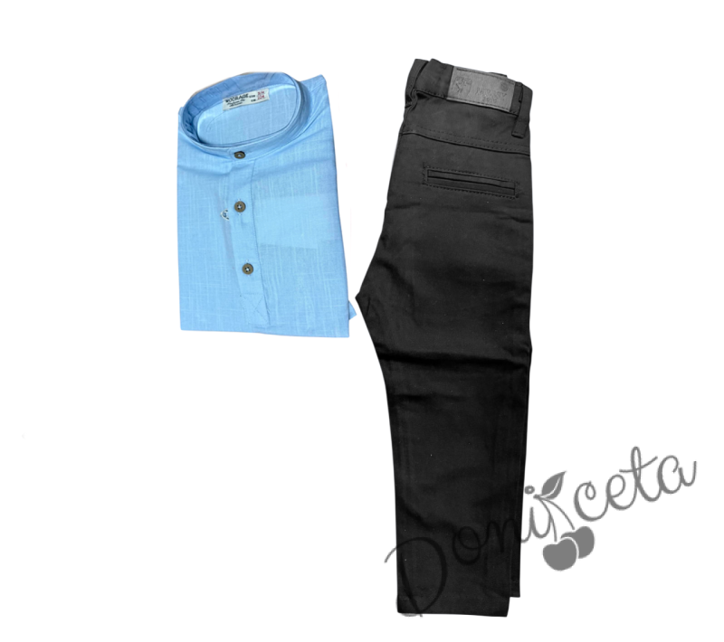 Детски комплект за момче от 2 части-риза в светлосиньо и панталон в черно
