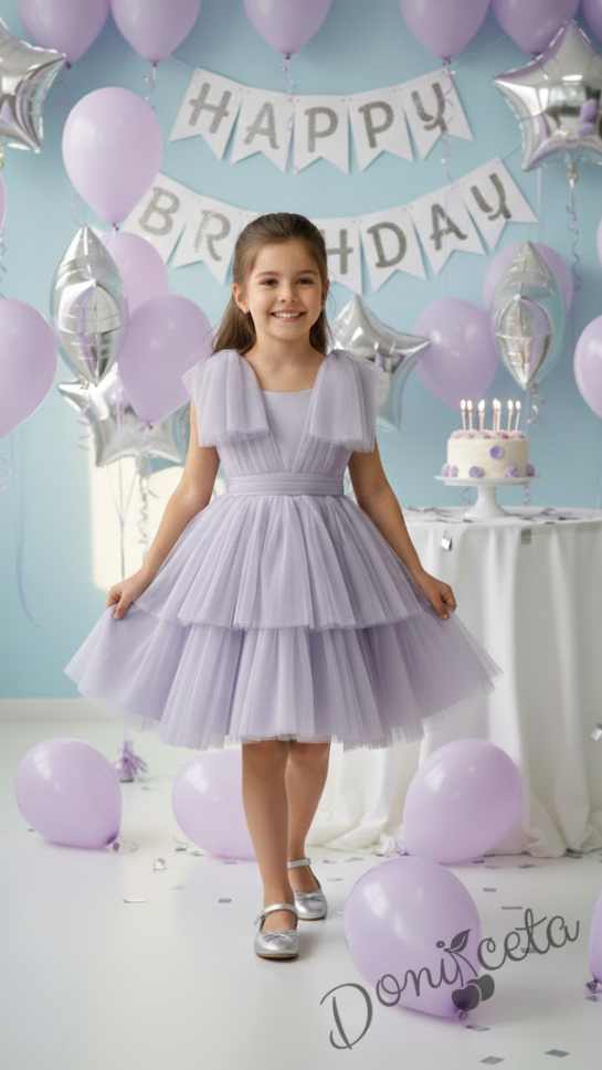 Официална празнична детска рокля с тюл в лилаво