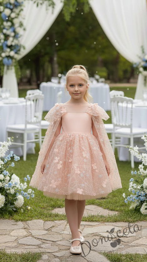 Начало МОМИЧЕТА Официална детска рокля с къс ръкав в прасковено Розела