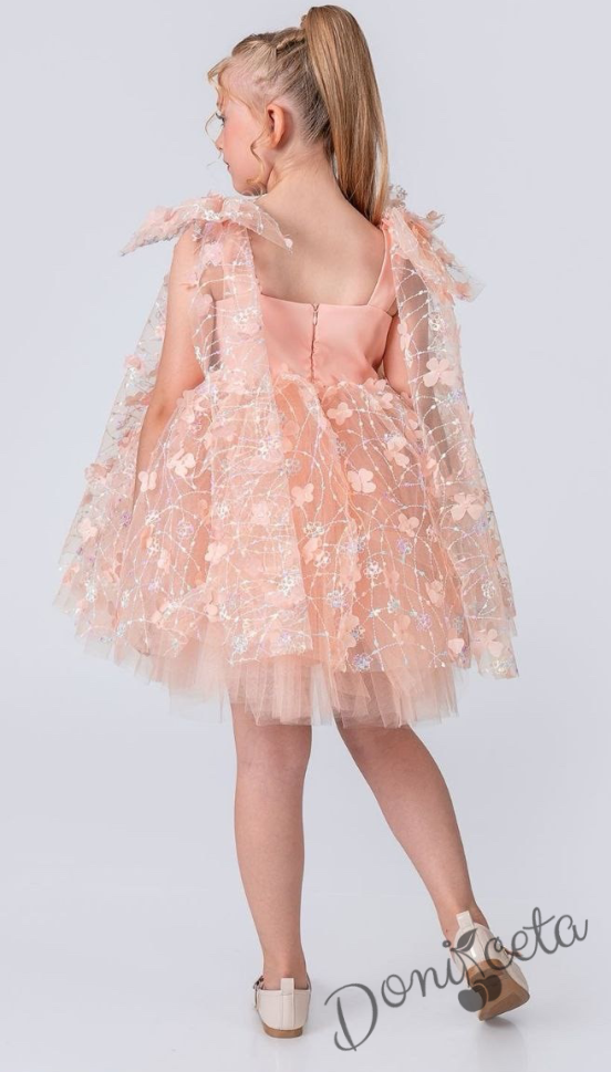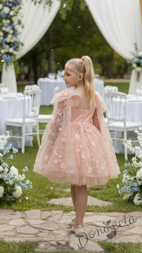 Официална детска рокля с къс ръкав в прасковено Розела