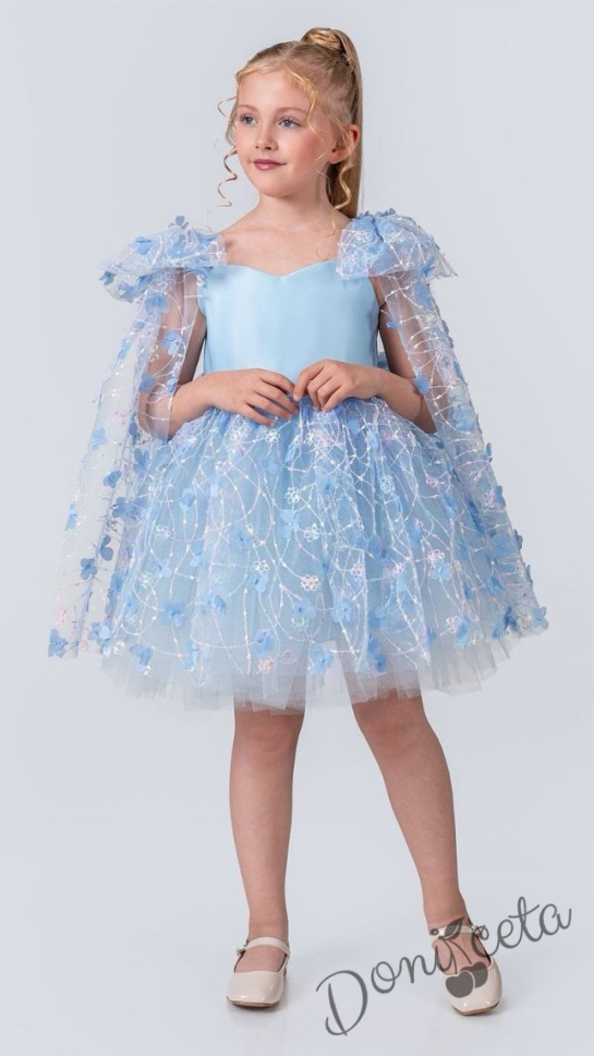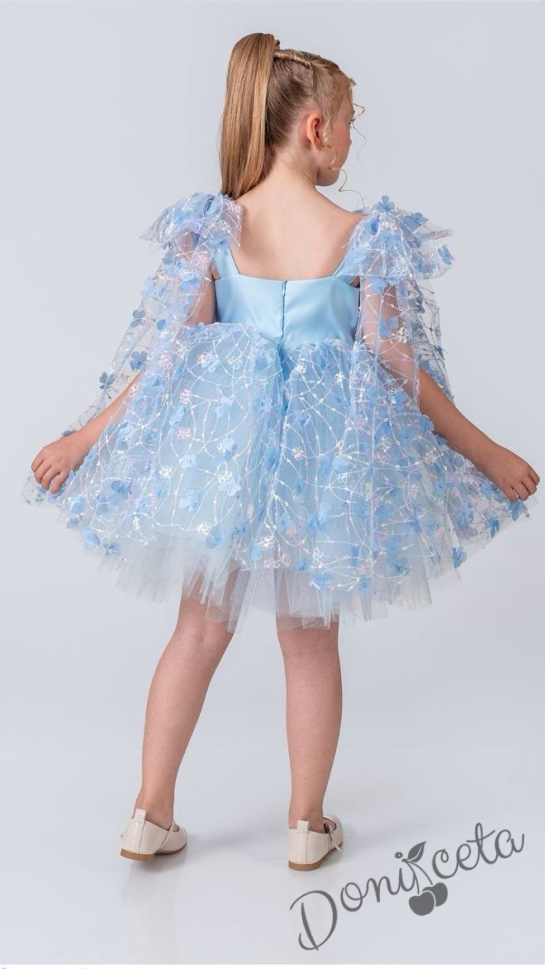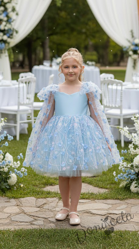- Изключително красива детска рокля с тюл на цветя в светлосиньо.