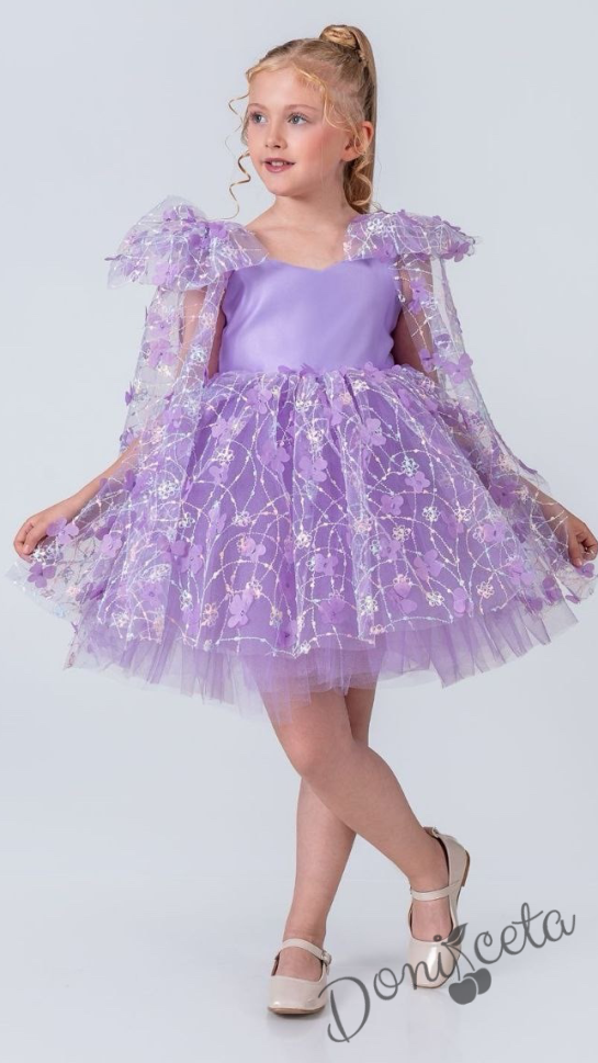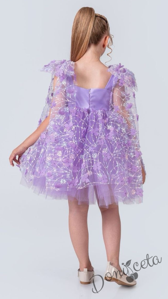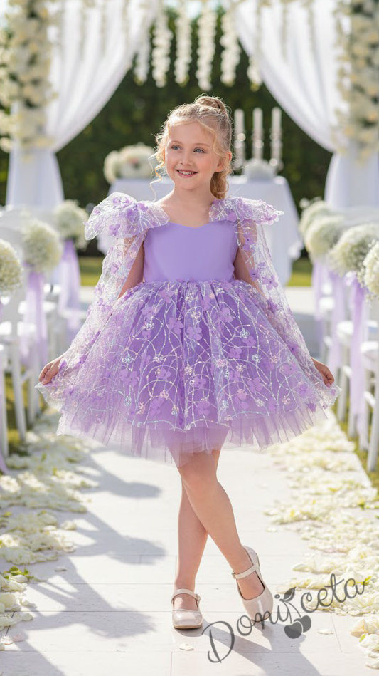 - Изключително красива детска рокля с тюл на цветя в лилаво.