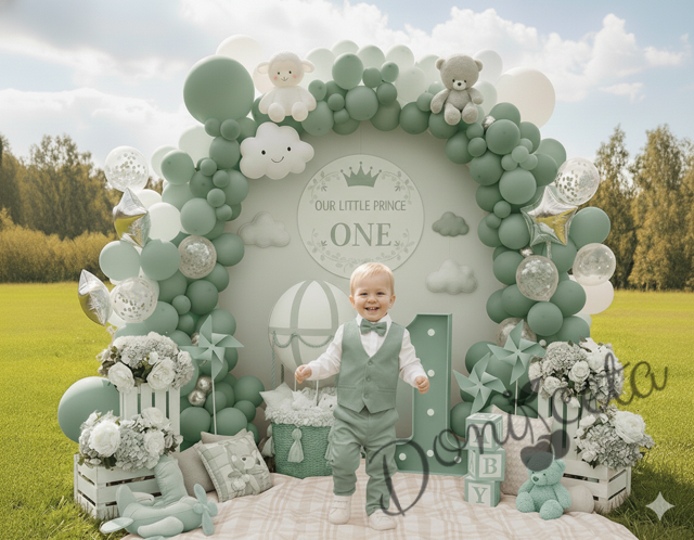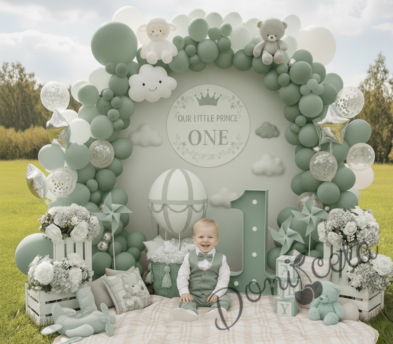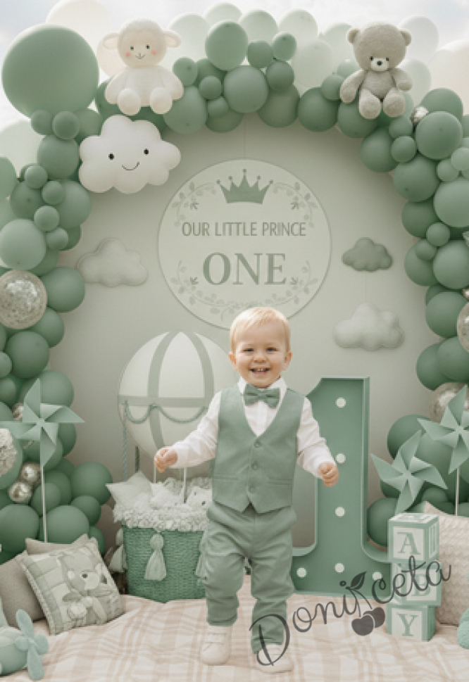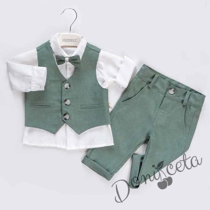 Бебешки комплект за момче от 4 части - риза в бяло, панталон, елек и папийонка в зелено