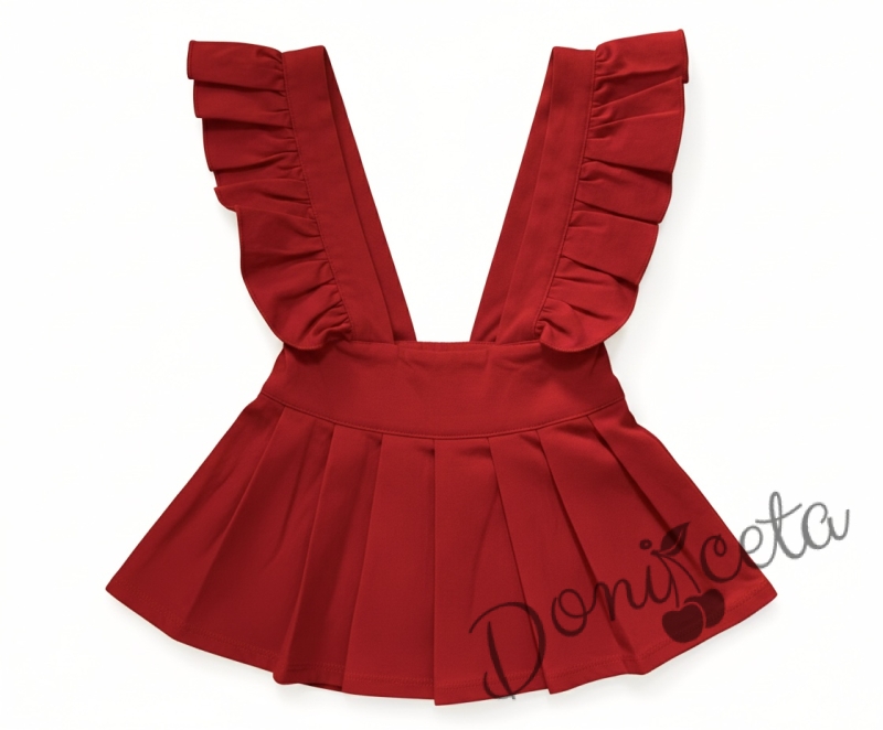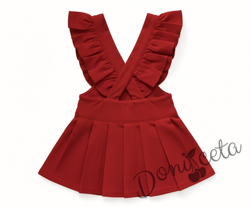 Комплект за момиче от сукман с къдрички в червено и бяла блузка с дълъг ръкав