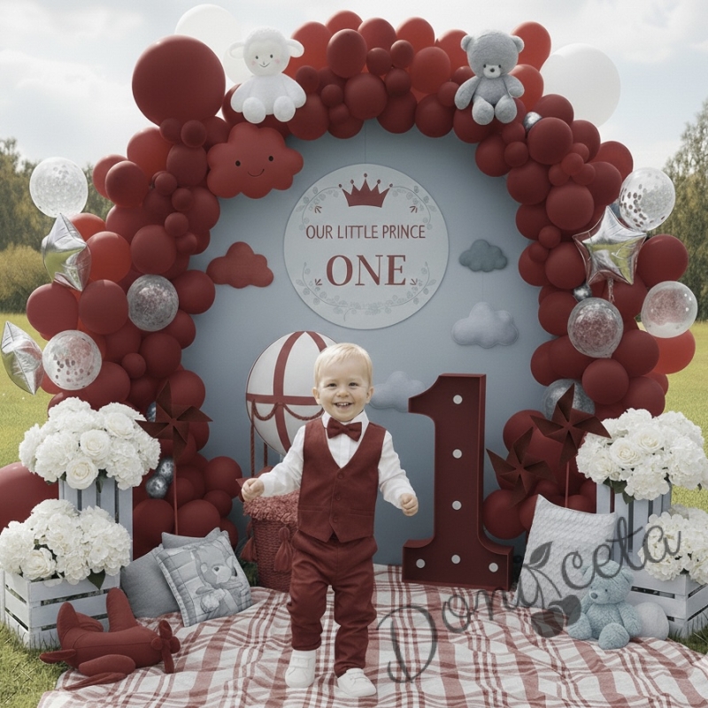 Представяме ви елегантния официален костюм в цвят бордо, създаден да придаде стил и класа на вашето момче. Този изискан костюм е перфектен избор за специални поводи, тържества и официални събития.