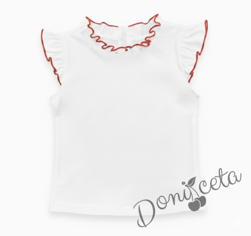 Детска блуза без ръкав в бяло Гери с крилца обкрайчени в червено
