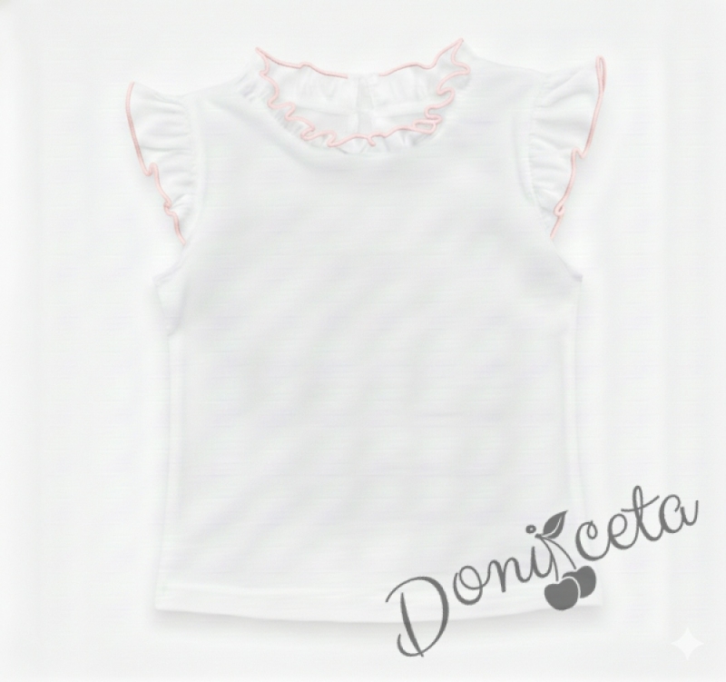 Детска блуза без ръкав в бяло Гери с крилца обкрайчени в розово