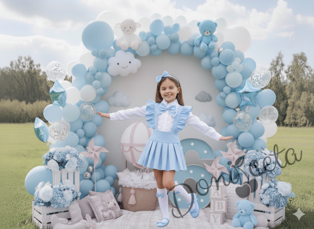 Представяме ви елегантен комплект за момиче "Гери" в светлосиньо, идеален за празници в училище, фотосесии и други специални поводи, но и за всеки ден. Този очарователен комплект от 3 части ще превърне всяко момиченце в истинска принцеса.