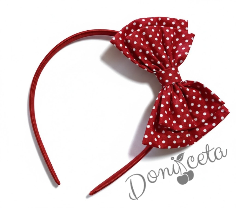 - Нежна ръчно изработена диадема в червено на бели точки.