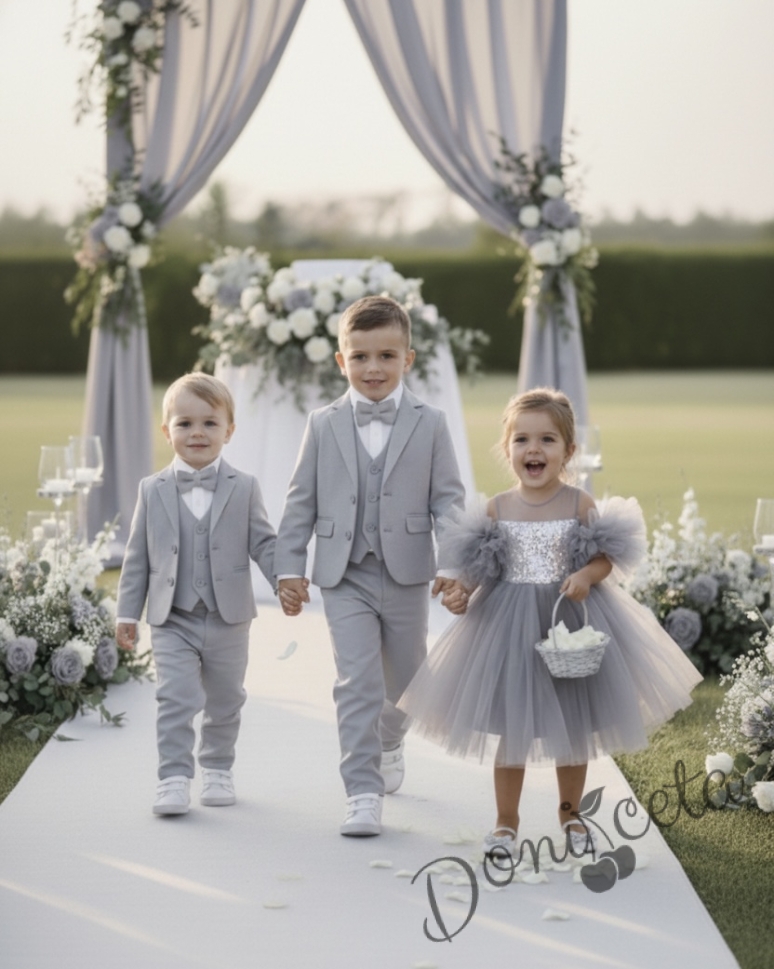 - Много елегантен костюм в сиво за малките джентълмени.