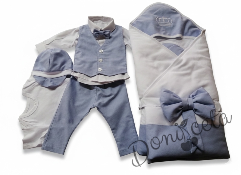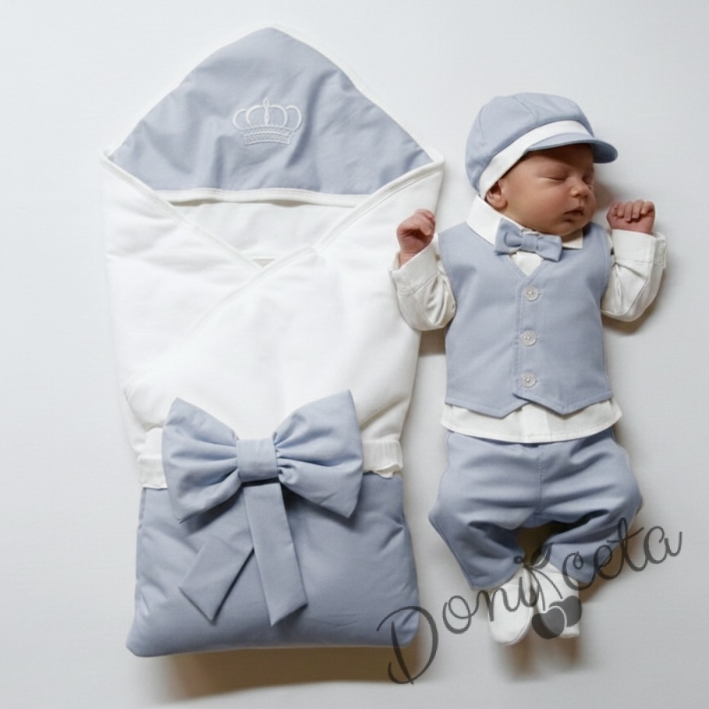 Бебешки елегантен комплект за изписване за момче синьо и бяло