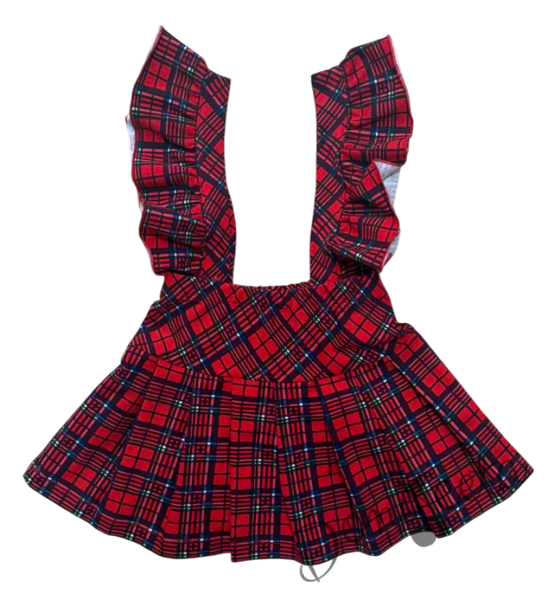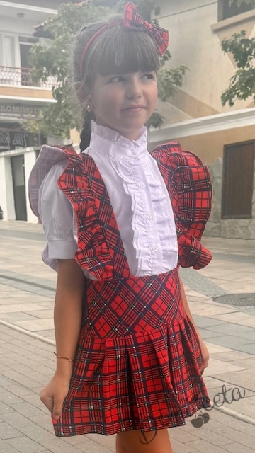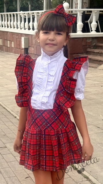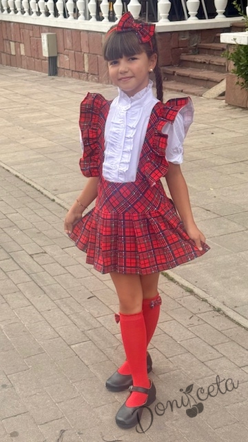 Детски сукман Гери в червено и каре с плисирана пола Карена