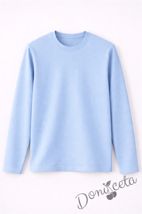 Детска блуза с дълъг ръкав в светлосиньо за момче или момиче и за ученическа униформа