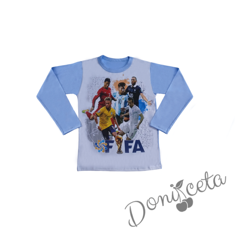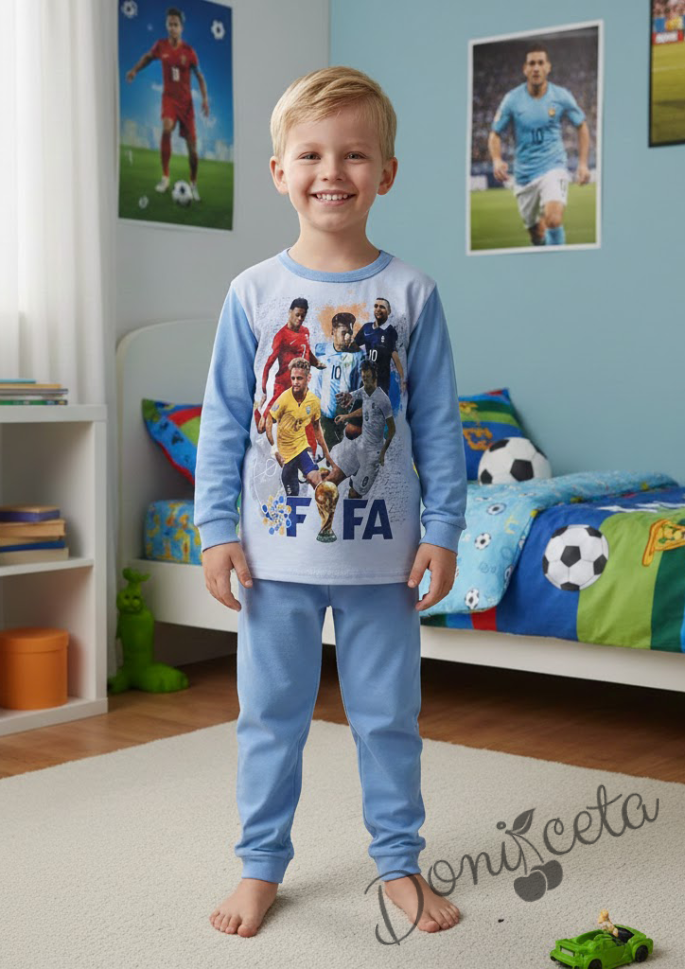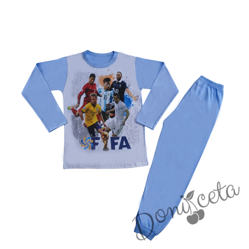 Детска пижама за момче с дълъг ръкав в светлосиньо с ФИФА