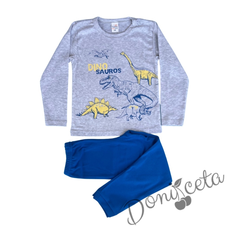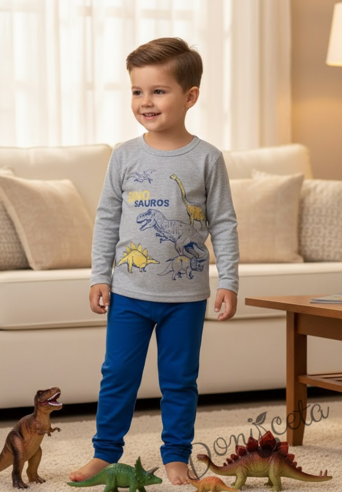 Детска пижама за момче с дълъг ръкав с динозаври в синьо и сиво