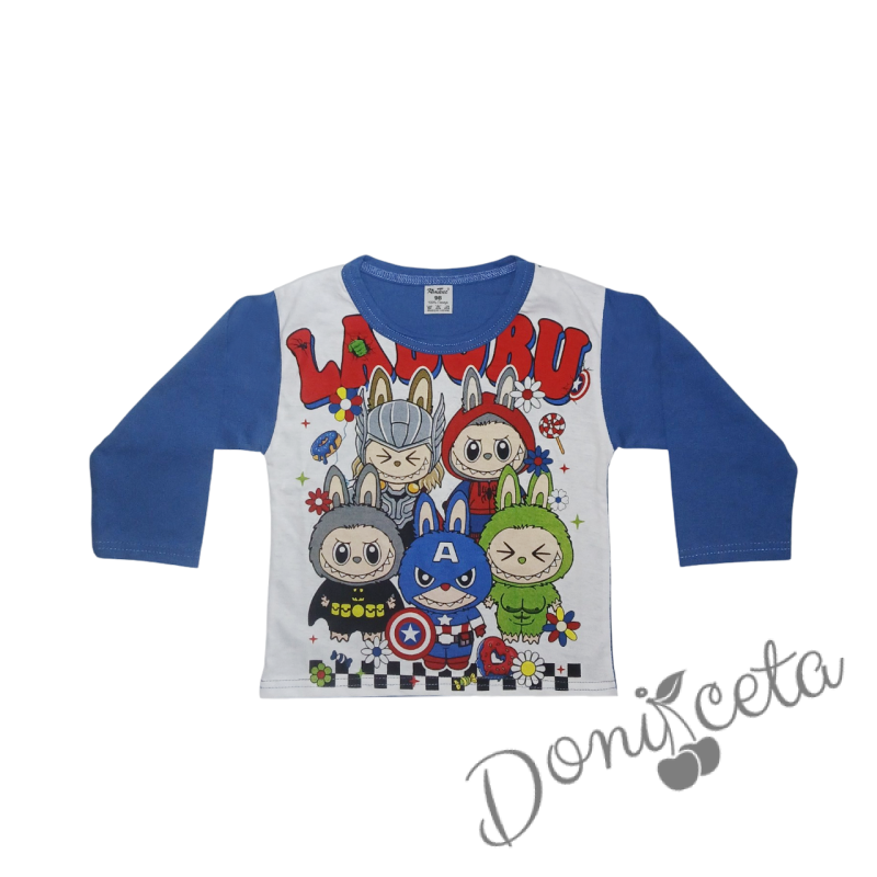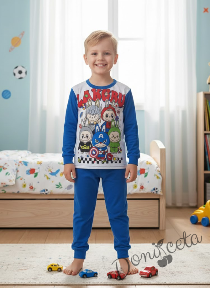 Детска пижама Лабубу за момче с дълъг ръкав в синьо