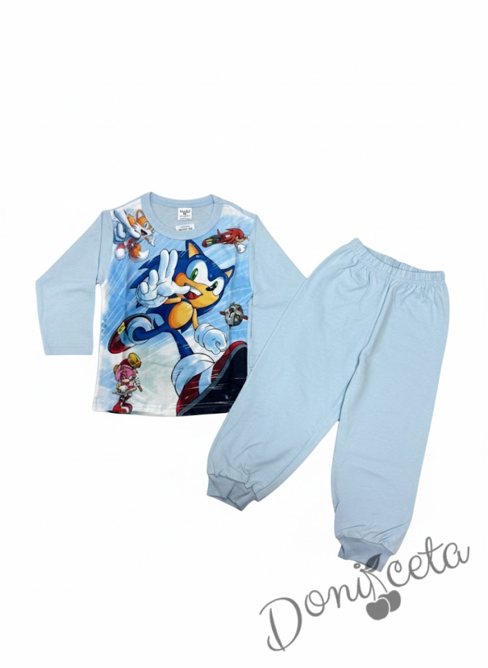 Детска пижама Соник с дълъг ръкав в светлосиньо