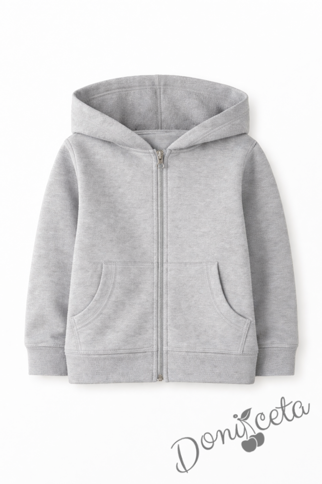 Начало МОМИЧЕТА Ватиран детски суитшърт с цип и дълъг ръкав в сиво, подходящ за момче или момиче и за ученическа униформа