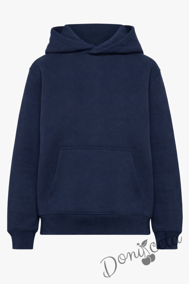 • Изчистено ватирано худи с дълъг ръкав в тъмносиньо за момче или момиче, подходяща за униформа.
