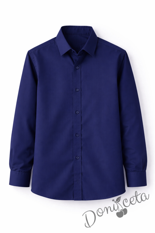 Детска риза за момче в тъмносиньо с дълъг ръкав подходяща и за ученическа униформа