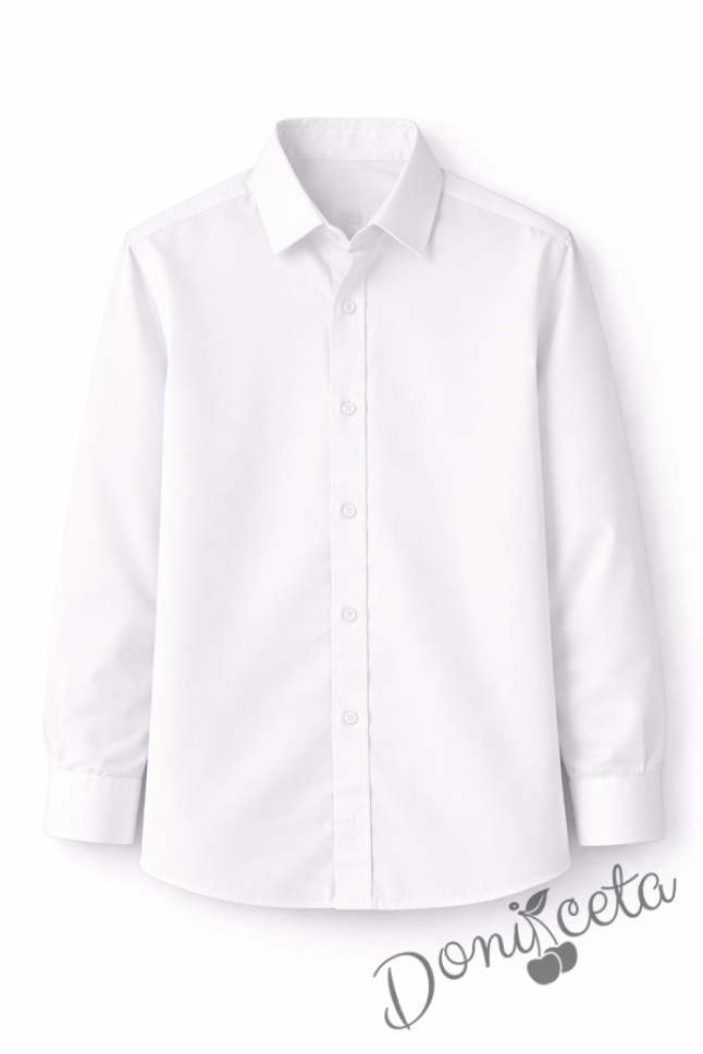 Представяме ви нашата детска риза с дълъг ръкав за момчета в бяло.