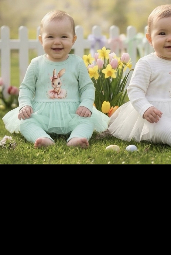 Бодито е украсена с апликация на зайче, което придава допълнителен чар и закачливост. Панталонките са с удобен дизайн, осигуряващ свобода на движенията на бебето.