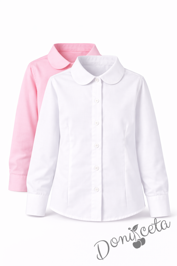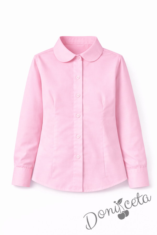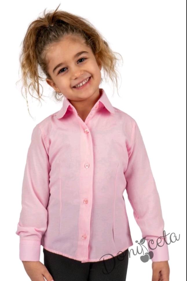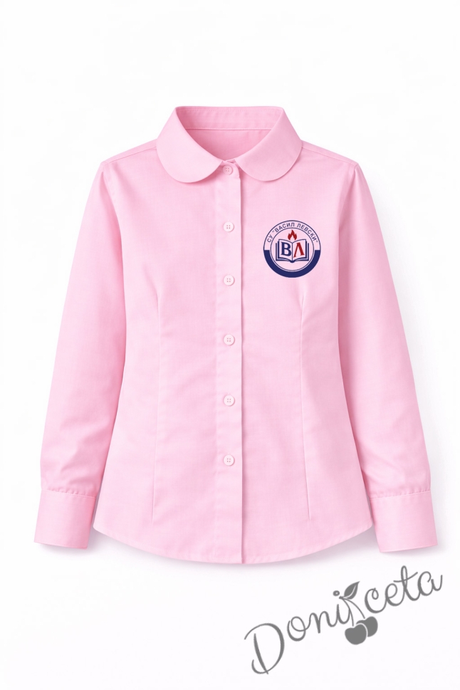 Детска риза в розово за момиче с дълъг ръкав и за ученическа униформа с лого