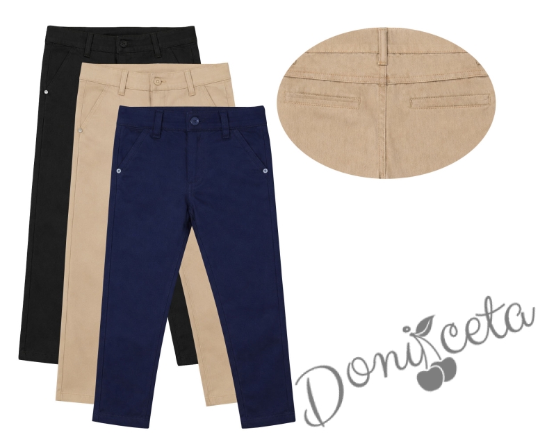 Представяме ви този изключително стилен и модерен черен панталон за момче, който е перфектното допълнение към гардероба на вашето дете. Този панталон е универсален и лесно се комбинира с различни дрехи, което го прави идеален за училище.