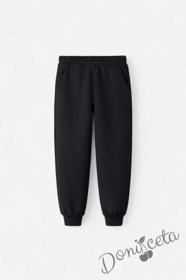 Детско неватирано долнище на анцуг за момче в черно, подходящо е и за ученическа униформа