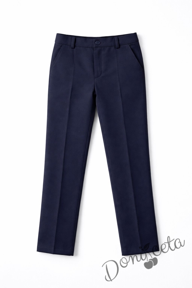 Начало МОМЧЕТА Официален панталон в тъмносиньо с ластик отзад за момче, подходящ и за ученическа униформа