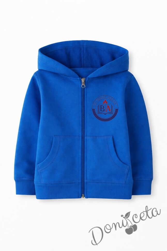 Ватиран детски суитшърт с лого по избор и цип с дълъг ръкав в синьо, подходящ за момче или момиче и за ученическа униформа