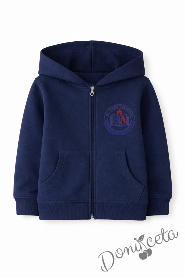 Ватиран детски суитшърт с лого по избор и цип с дълъг ръкав в тъмносиньо, подходящ за момче или момиче и за ученическа униформа